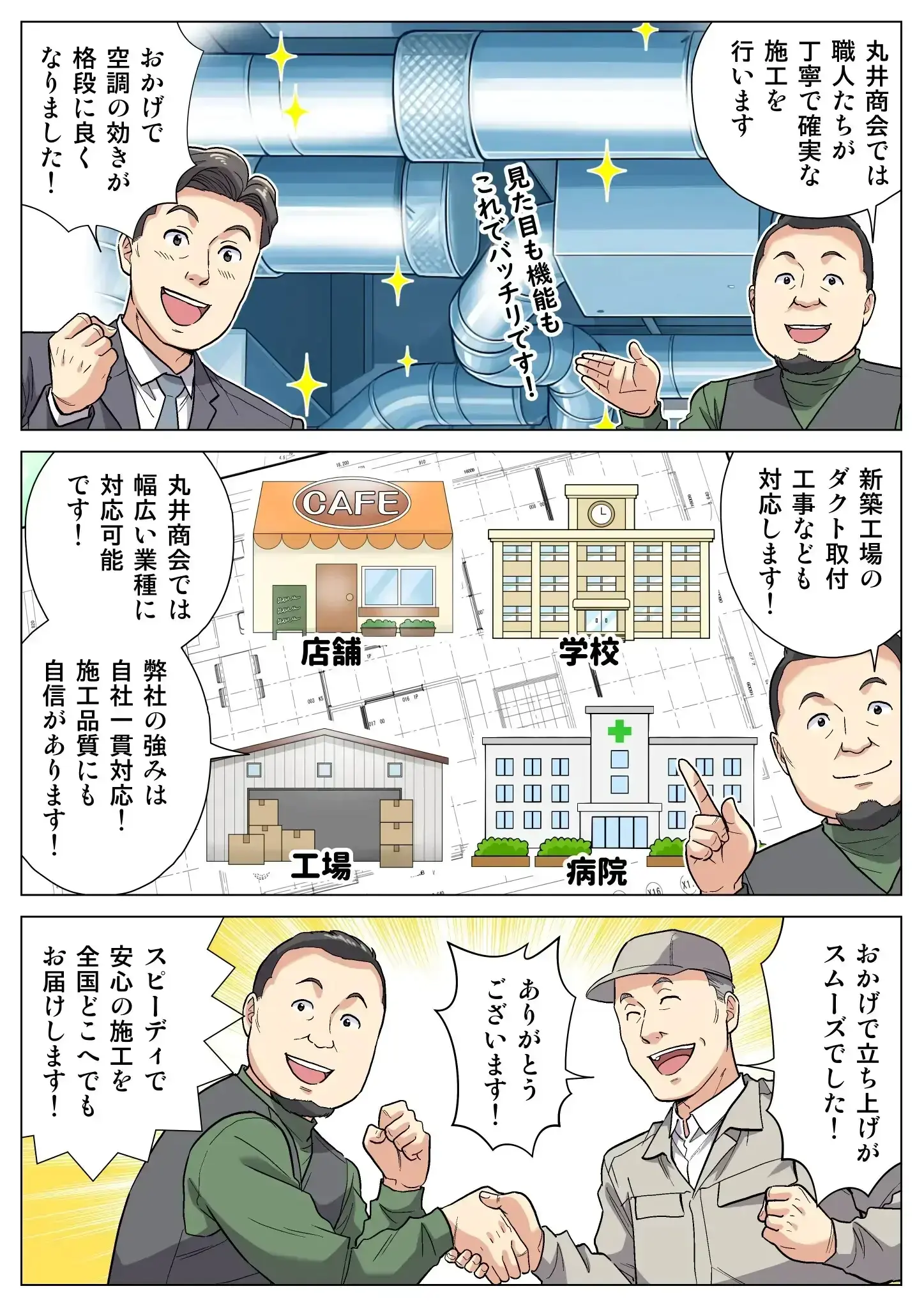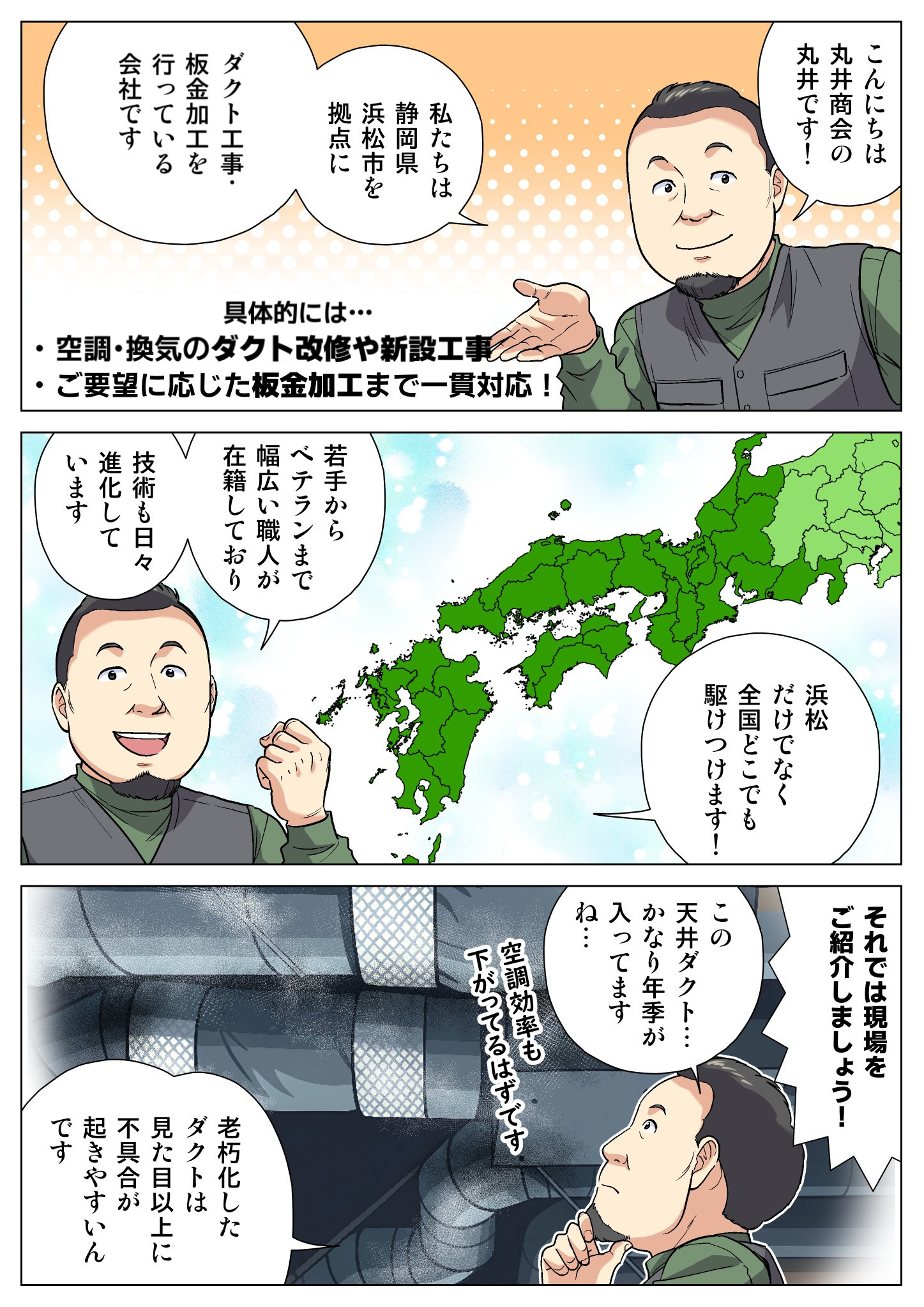 空調用ダクトの製作・取付・修理・整備に関するご依頼は、静岡県浜松市の株式会社丸井商会へ。全国対応可能、個人・企業問わず柔軟にご対応いたします。