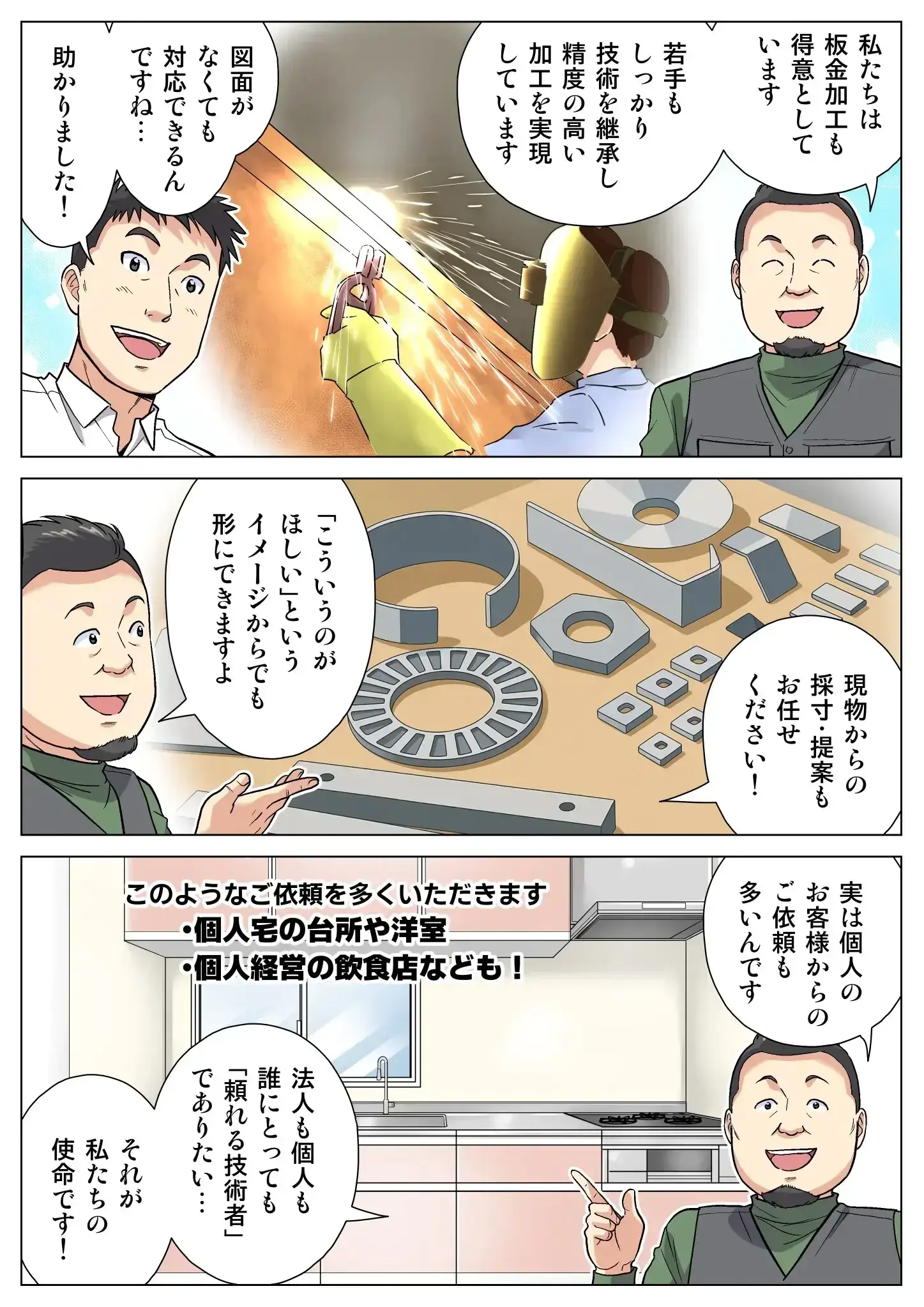 資格を持つ職人が一つひとつの工程を大切に、図面に忠実な精密加工を行い、機能と安全性に優れたダクトを提供します。